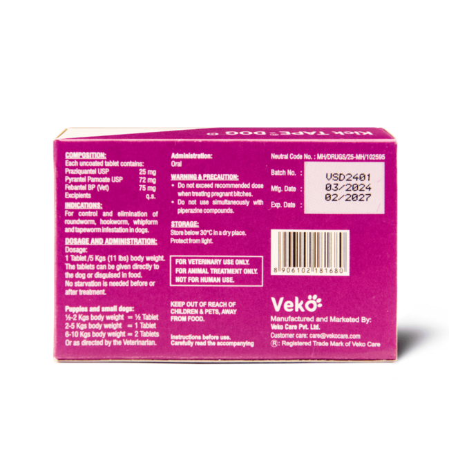 • For dogs: Dosage depends on body weight. Typically, 1 tablet per 10 kg of body weight.
