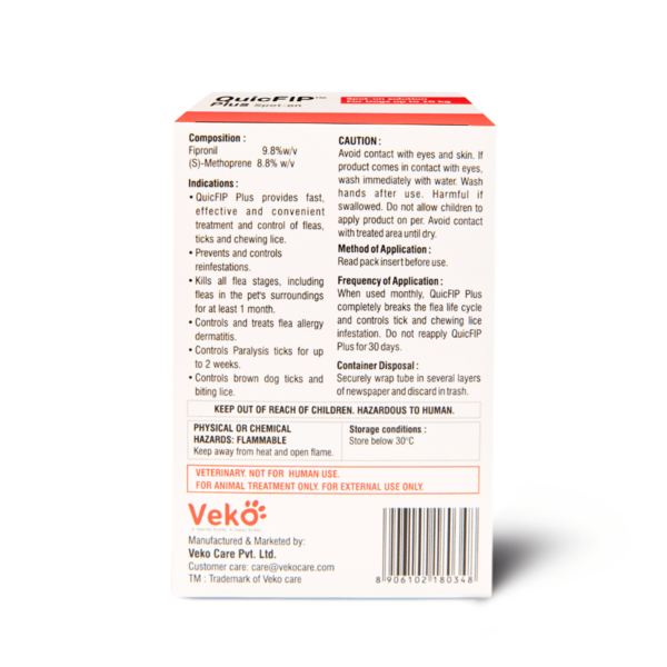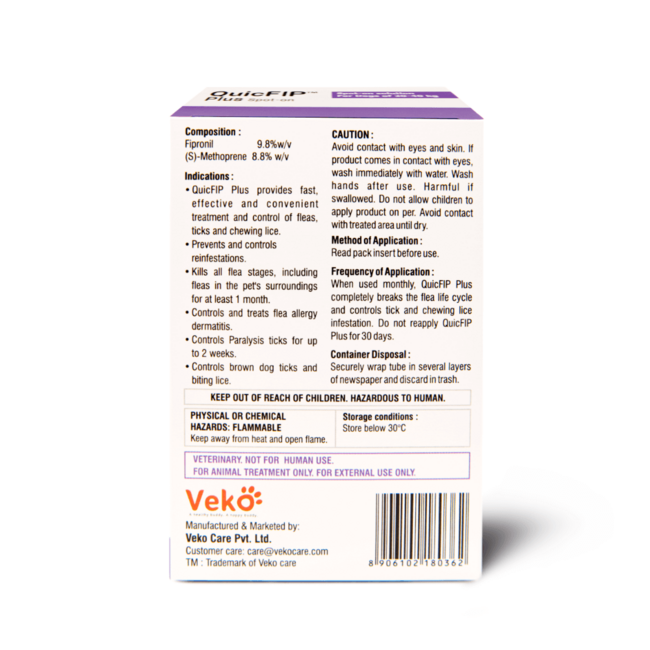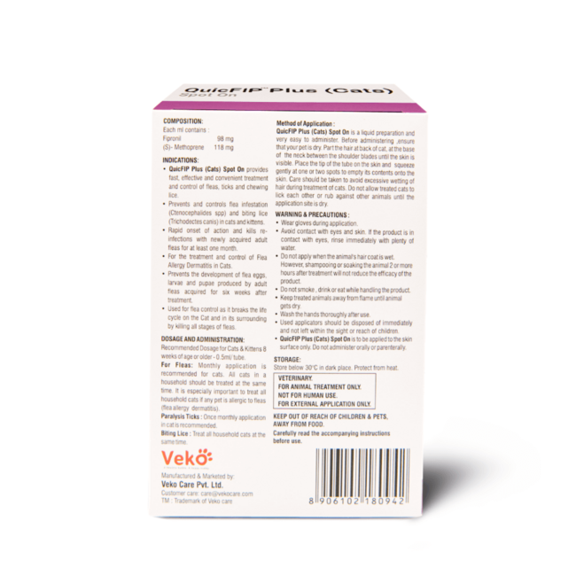 QuicFIP Plus is a fast-acting topical treatment designed to protect both dogs and cats from fleas, ticks, and lice. By targeting all life stages of fleas, it effectively eliminates current infestations and prevents future outbreaks, keeping your pets healthy and comfortable.