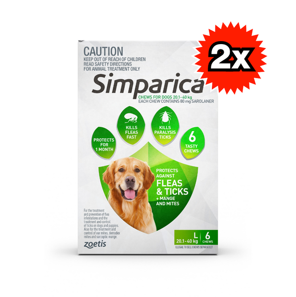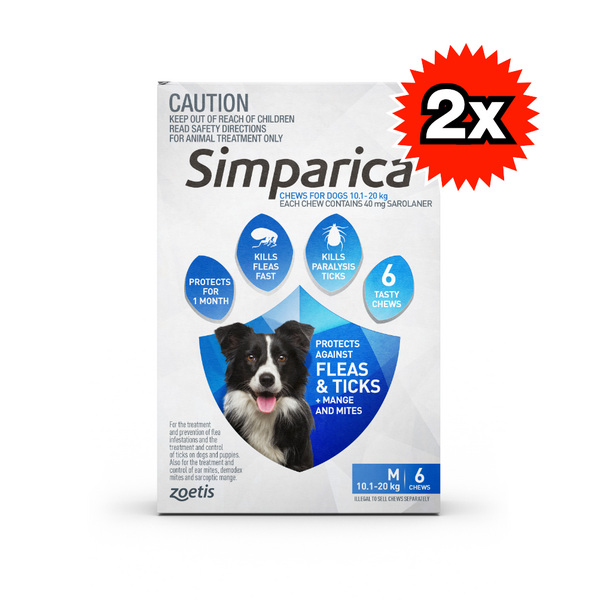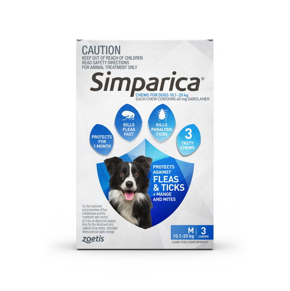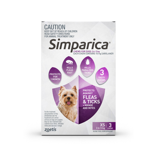 Simparica for Dogs is a fast-acting, monthly chewable tablet designed to protect your dog from harmful parasites. It targets and eliminates fleas, ticks, and mites, providing long-lasting relief and ensuring your dog's comfort and well-being. This easy-to-administer tablet starts killing fleas within 3 hours and ticks within 8 hours, offering your pet immediate protection that lasts for a full 35 days.